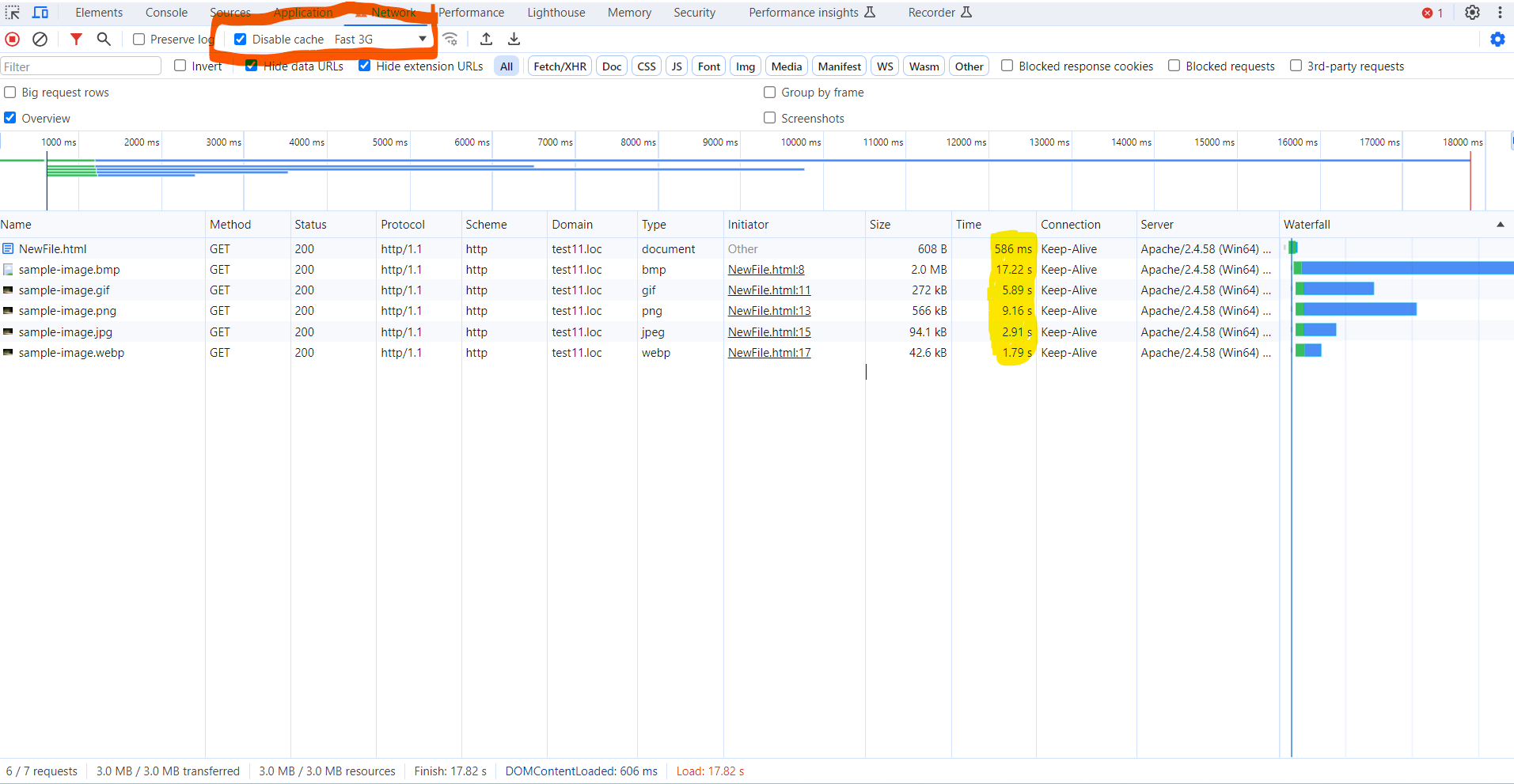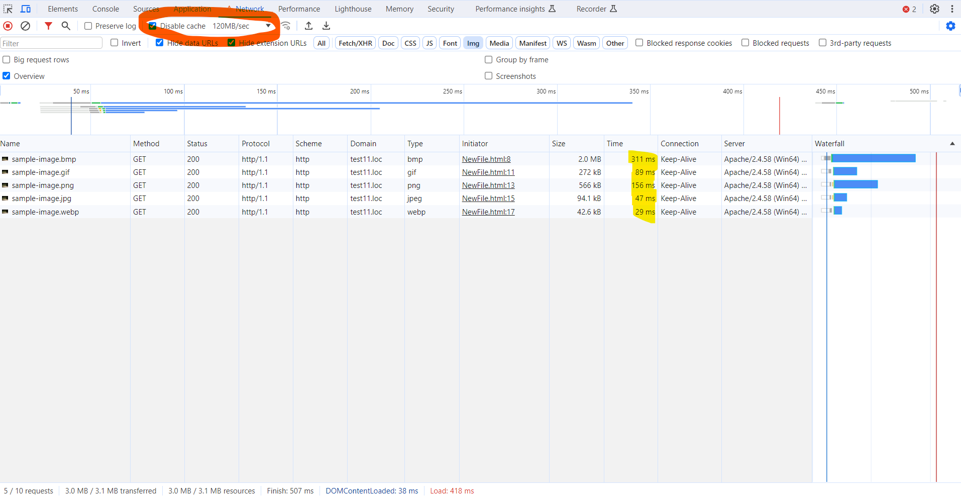 As a testing environment, we used a local Apache web server and included images on a sample HTML page.