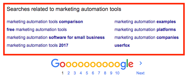 Write down those that seem relevant and promising. In this example, if I’m selling marketing automation software, terms like “tools,” “software,” and “platforms” should definitely be included in my list.